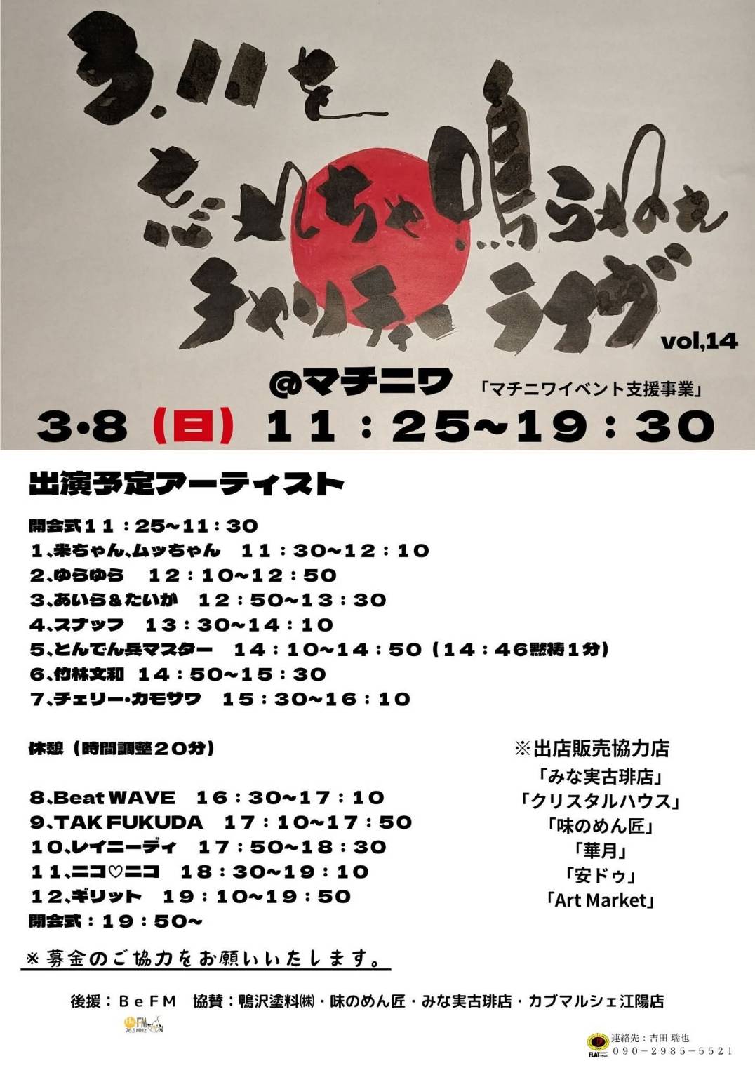 3.11を忘れちゃ鳴られぇチャリティーライブvol.14【2026年3月8日(日)】